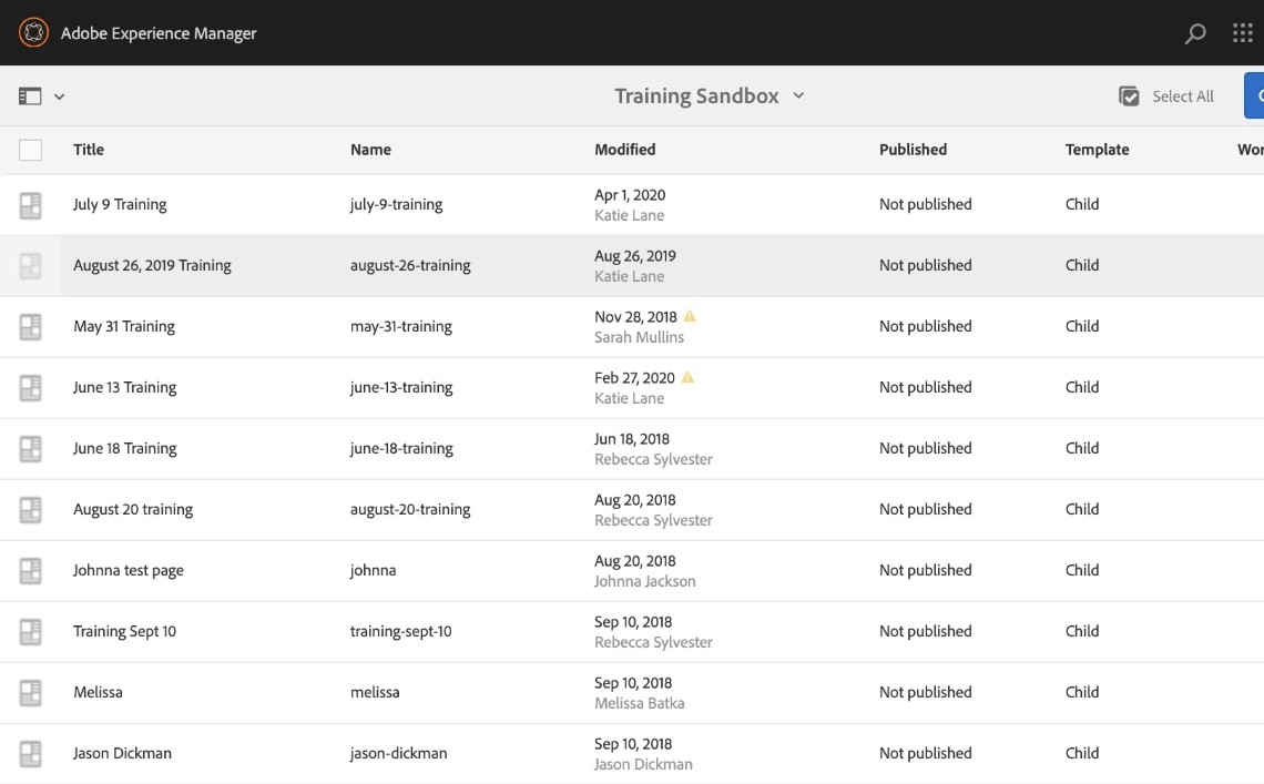 After you log into AEM, you'll be able to see all pages and sites in AEM using the sites console. Locating your site and having a general understanding how sites and pages are organized in AEM will make completing several actions easier.